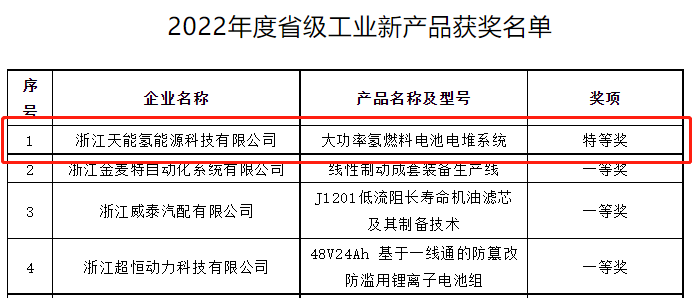 近日,浙江省长兴县经济和信息化局公示了2022年度省级工业新产品获奖名单,由浙江乐鱼氢能源科技有限公司研发生产的大功率氢燃料电池电堆系统获得全县唯一省级特等奖。